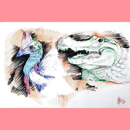 Mér fannst sérstaklega skemmtilegt að teikna orð dagsins og ég ákvað að teikna tvær myndir fyrir hvern dag og fyrir hvert orð notaði ég líka sömu áhöldin. Þarna leifði ég mér svolítið að gera bara það sem ég vildi og leifa orðunum að veita mér óheftan innblástur. Myndirnar urðu allar frekar ólíkar og það er áhugavert að fletta í gegn um þær eftir á.